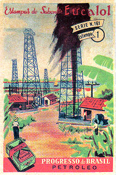 PETRÓLEO Constituindo uma incomenurável fonte de riqueza, o petróleo – também chamado OURO NEGRO – jamais havia sido explorado, apesar dos vestígios iniludíveis da sua existência em vários pontos do território nacional. Com a criação do Serviço Nacional de Petróleo e graças a assitência do Governo Federal que enviou sondas perfuradoras e técnicos, em pouco tempo tivemos a abertura do primeiro poço petrolífero no Brasil: o da localidade de Lobato, no Estado da Bahia. OIL Incomenurável