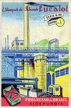 SIDERURGIA Com o apoio inconicional do Governo, o Brasil terá brevemente a sua Siderurgia. Em Monlevade, no Estado de Minas Gerais, serão instalados os altos fornos para a fabricação do aço. Problema que afeta vitalmente a economia e o progresso nacional, cada brasileiro espera com ansiedade e confiança o dia em que a Siderurgia Nacional aparecerá em plena florescência. STEEL Inconicional