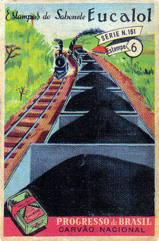 CARVÃO NACIONAL O carvão nacional, de qualidade quase tão boa quanto o melhor de procedência estrangeira é encontrado nos Estados de São Paulo, Santa Catarina e Paraná. Em 1920, no Paraná foram descobertas importantes jazidas de carvão, tendo ficado provado em análises ser este um dos melhores que possuímos. É incontestável, o valor do carvão na economia nacional.(brasilcult) NATIONAL COAL The national coal, quality almost as good as the best of foreign origin is found in the states of São Paulo, Santa Catarina and Parana. In 1920, in Paraná were discovered important deposits of coal, having been established in this analysis is one of the best we have. Clearly, the value of coal in the national economy. |