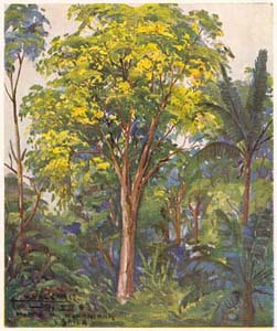 This tree is highly ornamental, bearing pink flowers on its long and flexous branches as Cassias grandis does; it is indicated to help scenic beauty for parks, gardens, and avenues. In planting, too much shade, which might modify its specific form, should be avoided. It flowers in December and January. |
