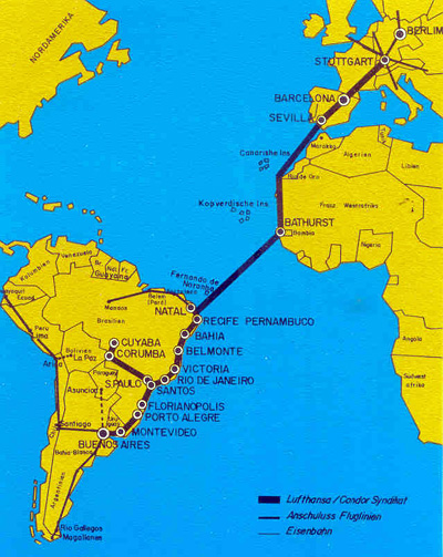 rota pioneira do vôo Lufthansa-Syndicato Condor, é