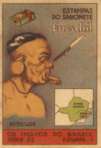 BOTOCUDOS Vivem nas florestas entre Rio Prado e Rio Doce. Andam inteiramente nus e pintam o corpo. Antigamente eram antropófagos. São polígamos. Acreditam que quando morrem se transformam em jaguar. Fabricam arcos, massas de madeira e machados de pedra. |