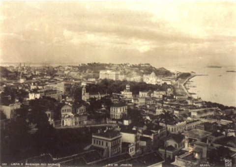 296 - FOTOGRAFIAS (03) Lapa e Rio Branco, tendo como fundo o Morro do Castelo (01) - Leme (01) - Glória (01) - Início do século - Fotos Bippus - Emoldurados. |
