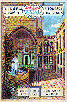 RESIDÊNCIA EM ALEPO Alepo é uma cidade muito populosa da Síria, e suas casas residenciais conservaram um aspecto típico. A ilustração mostra uma casa construida segundo a característica arquitetura síria. RESIDENCE IN Aleppo Aleppo