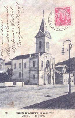 3 - Outro núcleo habitacional que foi importante na historia da cidade, foi o do futuro bairro de São Domingos. Nessa então freguesia esteve hospe-dado Dom João VI quando de luto pela morte de sua mãe, a Rainha Dona Maria I. O casarão que ocupou foi posteriormente a sede do Gover-no Provincial. Numa rua próxima da Matriz de São Domingos, que é vista neste postal impresso pelo estimado editor A. Ribeiro, residiu exilado, José Bonifácio, o Patriarca da Inde-pendência. Quando ele morreu, seu coração foi guardado nesse templo. (RMM) |