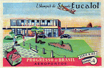 AEROPORTOS A gravura focaliza o aeroporto Santos Dumont, situado na Ponta do Calabouço, no Rio de Janeiro. De construção moderna e elegante o aeroporto Santos Dumont, na Baía de Guanabara, pelo cenário que o circunda tornou-se um dos mais bonitos do mundo. É o mais perfeito e a mais bonita estação de hidroaviões da América do Sul. (brasilcult) AIRPORTS The