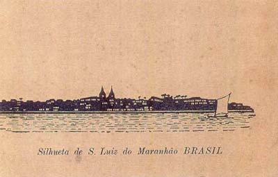 SILHUETA DE S. LUÍS DO MARANHÃO Artístico bico de pena, representando a cidade vista do mar. Em destaque, as torres da Sé e as palmeiras imperiais do Palácio do Governo. (brasilcult)
