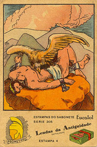PROMETHEU Depois de se vingar dos homens, Zeus fez prender a Prometheu, com fortes cadeias, no cimo do monte Cáucaso, onde todos os dias uma águia lhe devorava o fígado, e este sempre renascia. Esse tormento devia durar até que alguém, voluntariamente, se sujeitasse a ir para o lugar da vítima. |