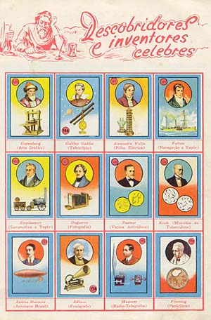Em outubro de 1997 apareceu na Feira de Colecionadores do Rio de Janeiro um extraordinário catálogo de álbuns de figurinhas organizado pela Professora Emérita da UFRJ Margarida N. Menezes. A abrangente pesquisa selecionou 1793 álbuns publicados até o mês de agosto de 1997. Como se esta trabalheira toda não bastasse, a colecionadora teve ainda a gentileza de distribuir vários catálogos como cortesia. Qualquer um que folhear este documento fica surpreso com a quantidade de temas e assuntos tratados. Foi também aqui que eu aprendi que a história das figurinhas no Brasil começou em 1907/08 com o lançamento da coleção de 60 bandeirinhas da tabacaria Estrela de Nazareth. Quase vinte anos depois é que começaram a aparecer as famosas estampas Eucalol (1925/26), que foram editadas até cerca de 1965. Mas é a partir de 1934, com o lançamento de 5 álbuns, que a coleção de figurinhas começa a pegar para valer. Entre os mais famosos podemos citar A Holandeza, Marcapito, Solar, balas Cinédia, balas Futebol, Azas da Vitória, balas Fruna e vários outros, que preenchiam o imaginário infantil e o dos colecionadores.Os álbuns, através da comunicação visual de suas figurinhas coloridas, eram uma fonte extraordinária de cultura e conhecimentos gerais. |