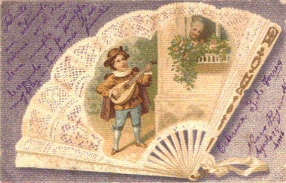 ![]() A igreja grega, ao ordenar seus padres, presenteava-os com um leque de ébano ou sândalo, madeiras aromáticas para que eles se abanassem durante os ofícios. (Mar) ![]() Catharina de Médicis introduziu seu uso em França, que foi logo aceito por Henrique II que aprimorou sua confecção, incumbindo para isto renomados artistas e pintores. (brasilcult) |