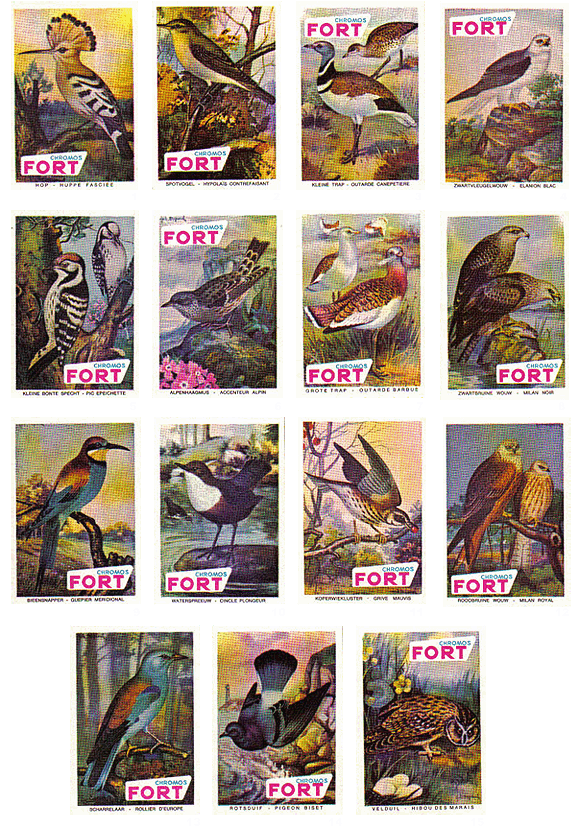 HOP - HUPPE FASCIEE 2- SPOTVOGEL - HYPOLAIS CONTREFAISANT 3- KLEINE TRAP - OUTARDE CANEPETIERE 4- ZWARTVLEUGELWOUW - ELANION BLAC 5- KLEINE BONTE SPECHT - PIC EPEICHETTE 6- ALPENHAAGMUS - ACCENTEUR ALPIN 7- GROTE TRAP - OUTARDE BARBUE 8- ZWARTBRUINE WOUW - MILAN NOIR 9- BIEENSNAPPER - GUEPIER MERIDIONAL 10- WATERSPREEUW - CINCLE PLONGEUR 11- KOPERWIEKLIJSTER - GRIVE MAUVIS 12- ROODBRUINE WOUW - MILAN ROYAL 13- SCHARRELAAR - ROLLIER D´EUROPE 14- ROTSDUIF - PIGEON BISET 15- VELDUIL - HIBOU DES MARAIS |