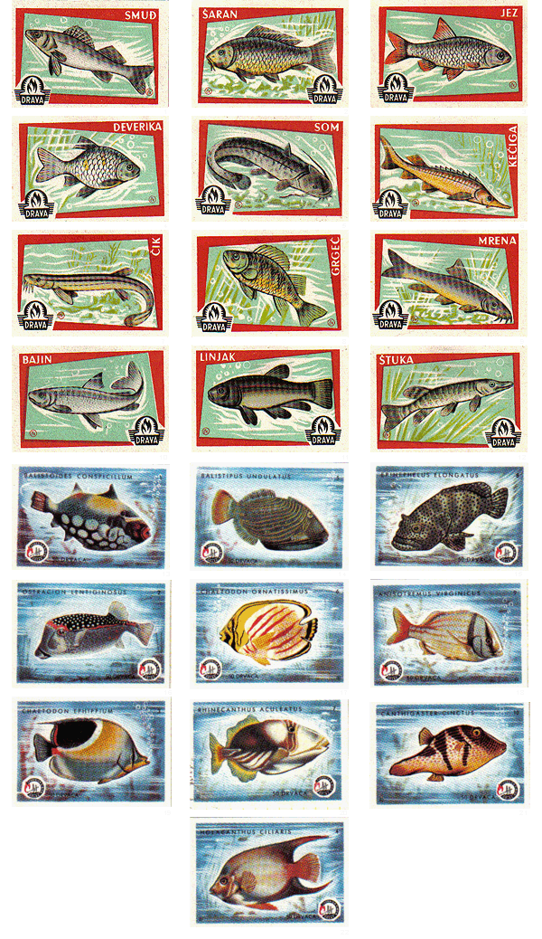 SMUD 2- SARAN 3- JEZ 4- DEVERIKA 5- SOM 6- KECIGA 7- CIK 8- GRGEC 9- MRENA 10- BAJIN 11- LINJAK 12- STUKA |