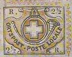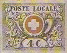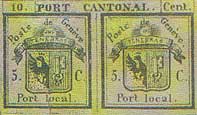 selo duplo no valor de 10 cêntimos, eram destinados ao porte cantonal.