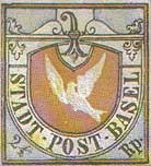 de 1843, nos valores de 4 e 6 rappen (destacando-se os algarismos