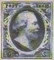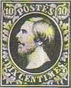em preto sobre verde, ainda em 1843. Estes selos, no valor de 5 cêntimos