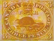 de 3 pence do Canadá, de 1851, com a figura heráldica