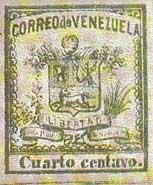 selo de 1/4 de centavo, da Venezuela, de 1861 |
