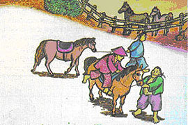 Esses homens viajavam em velozes cavalos devido ao grande tamanho daquele país. |