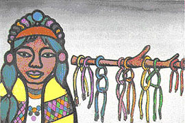Na América do Sul, mais ou menos há mil e quinhentos anos antes de Cristo, os Incas, povo que não conhecia a escrita, transmitiam suas mensagens através de pequenos nós em cordões em código, os quipos. |