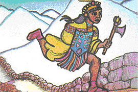 Esses quipos eram entregues a rápidos corredores, os chaquis, que se revezavam durante o percurso. |