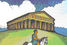 Vamos agora dar um salto no tempo e no espaço e visitar a Grécia para conhecer os gregos no século V A.C.. |