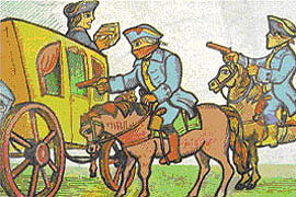 Entretanto, muitas vezes essas carruagens eram assaltadas e as cartas se perdiam no caminho. |