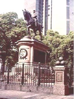 Podemos ver Osório montado a cavalo com a espada desembanhada.