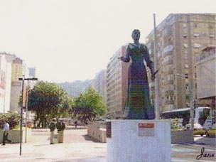 monumento aparece Princesa Isabel de corpo inteiro, usando um vestido