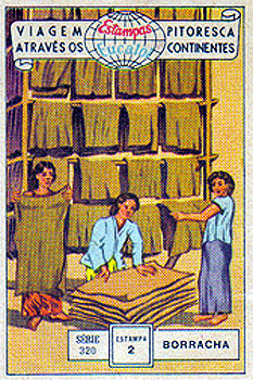 BORRACHA As primeiras seringueiras foram plantadas na Malásia no fim do século passado. Hoje, milhares de hectares são cobertos de seringais, e a indústria da borracha é a mais importante do país. O latex, depois de secado por meio de fumaça, é embalado pronto para a exportação. RUBBER