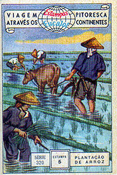 PLANTAÇÃO DE ARROZ A maior parte da população malaia pe rural e dedica-se à lavoura. A cultura do arroz, alimento básico de toda a Ásia, constitui a ocupação principal dos lavradores. O solo quente e úmido da Malásia é um campo ideal para a plantação do arroz. Depois de germinarem em viveiros, as plântulas são transplantadas nos arrozais que serão inundados quando o arroz brotar. PLANTING OF RICE Most of the small rural Malay population and is dedicated to farming. The cultivation of rice, basic food throughout Asia, is the main occupation of farmers. The soil warm and humid in Malaysia is an ideal area for planting rice. After germinate in nurseries, the seedlings are transplanted in paddy fields to be flooded when the rice sprout. |