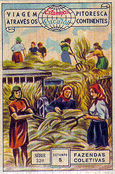FAZENDAS COLETIVAS As fazendas coletivas produzem a maior parte da alimentação da Rússia, bem como outros produtos agrícolas. Essas fazendas devem fornecer ao Governo uma quantidade determinada de seus produtos, por preços estabelecidos pelo mesmo; tem direito, porém, de vender ao mercado o que sobrar. Desde a guerra, a maior parte do trabalho na lavoura foi efetuado por mulheres. COLLECTIVE FARMS The collective farms produce most of the food in Russia and other agricultural products. These farms must provide the government a fixed quantity of their products at prices set by the same, is entitled, however, to sell to the market the remaining ones. Since the war, most of the work on the farms was done by women. |